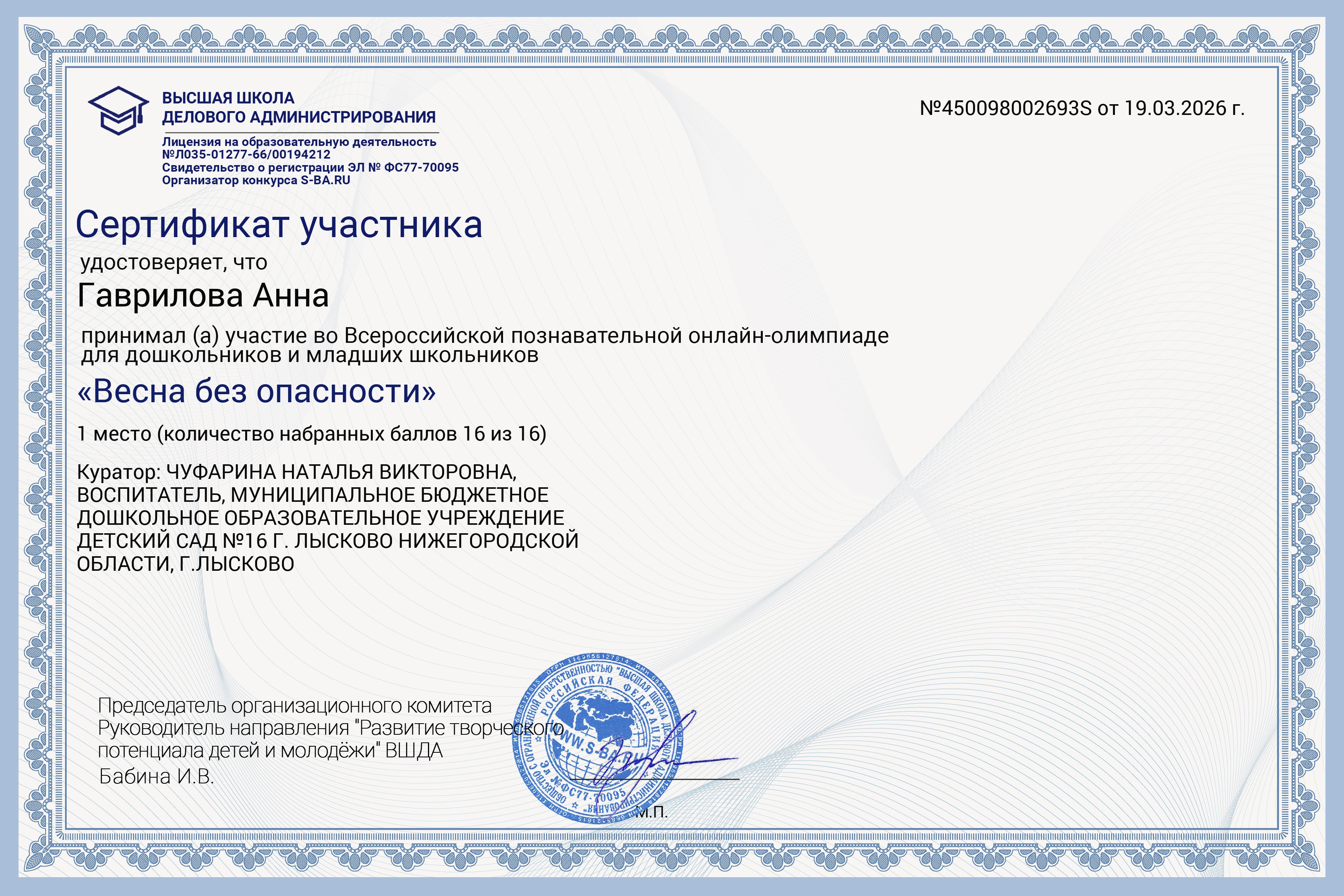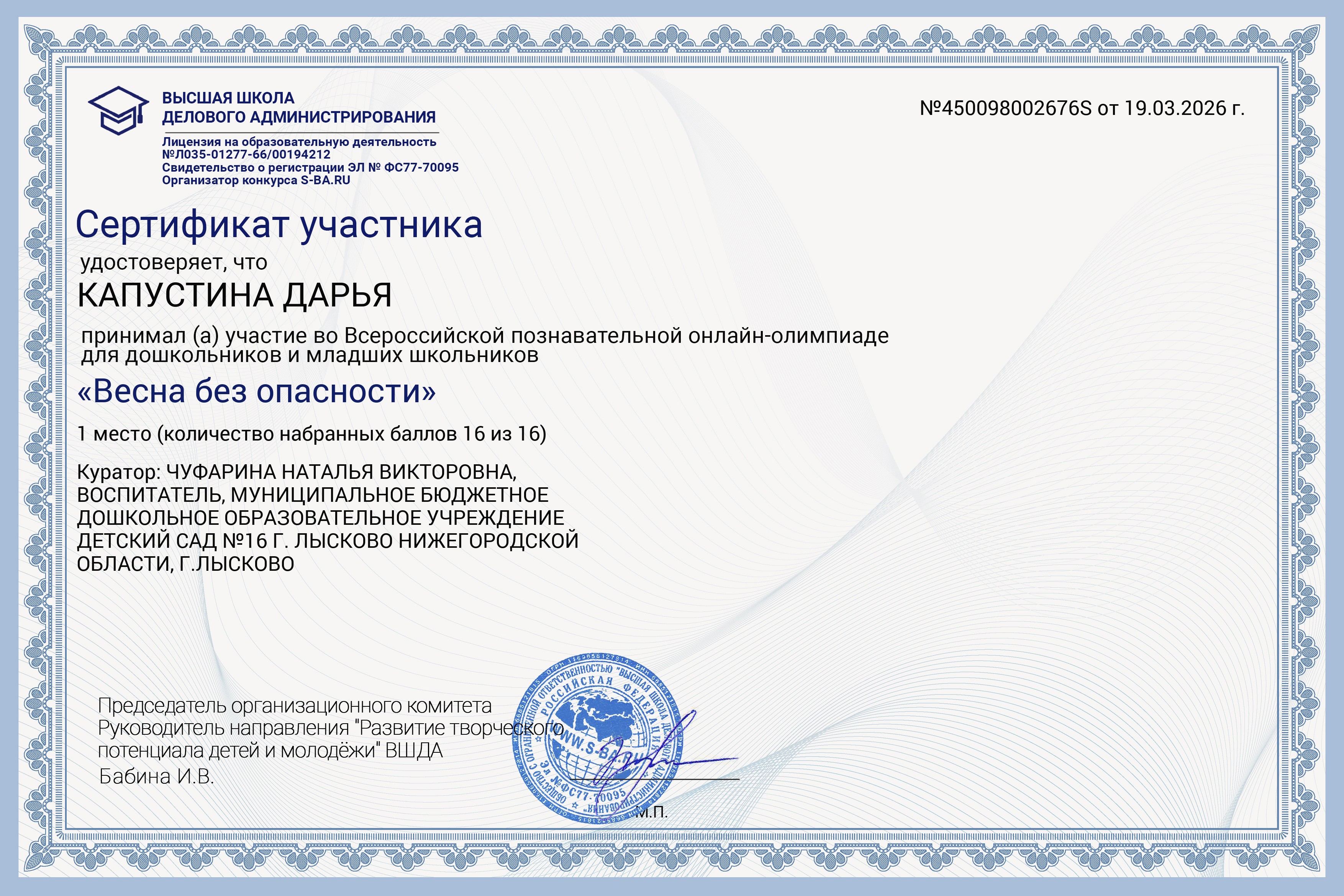 Всероссийская познавательная онлайн-олимпиада "Весна без опасности"