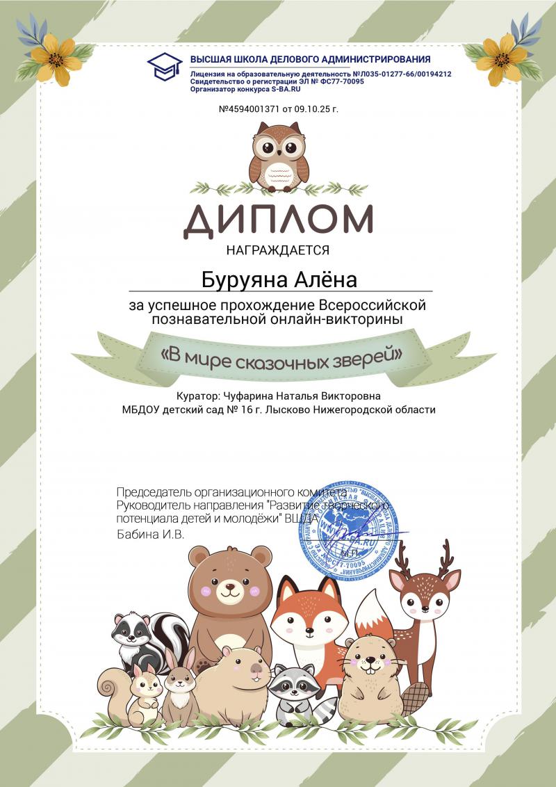 Всероссийская познавательная онлайн- викторина " В мире сказочных зверей"