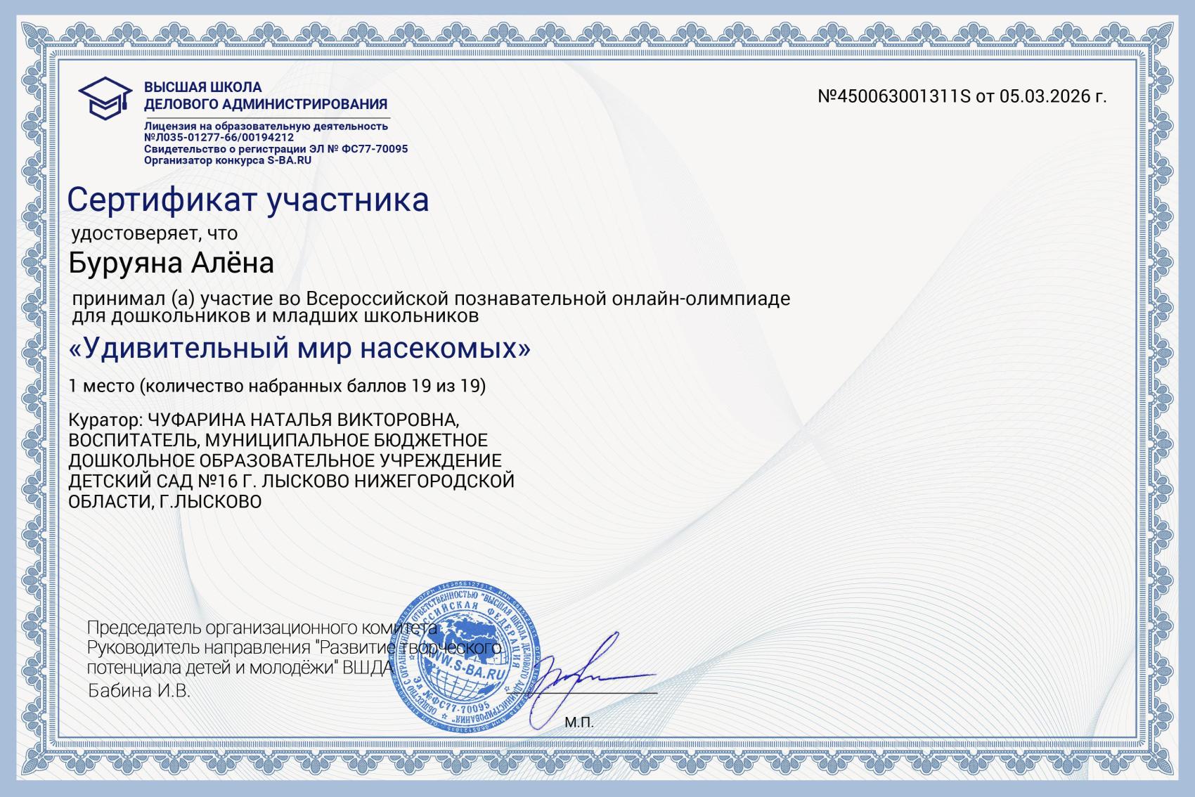 Всероссийская познавательная онлайн-олимпиада для дошкольников и младших школьников "Удивительный мир насекомых"