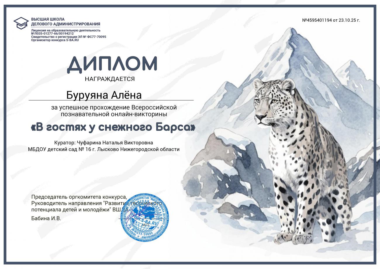 Всероссийская познавательная онлайн-викторина "В гостях у снежного Барса"