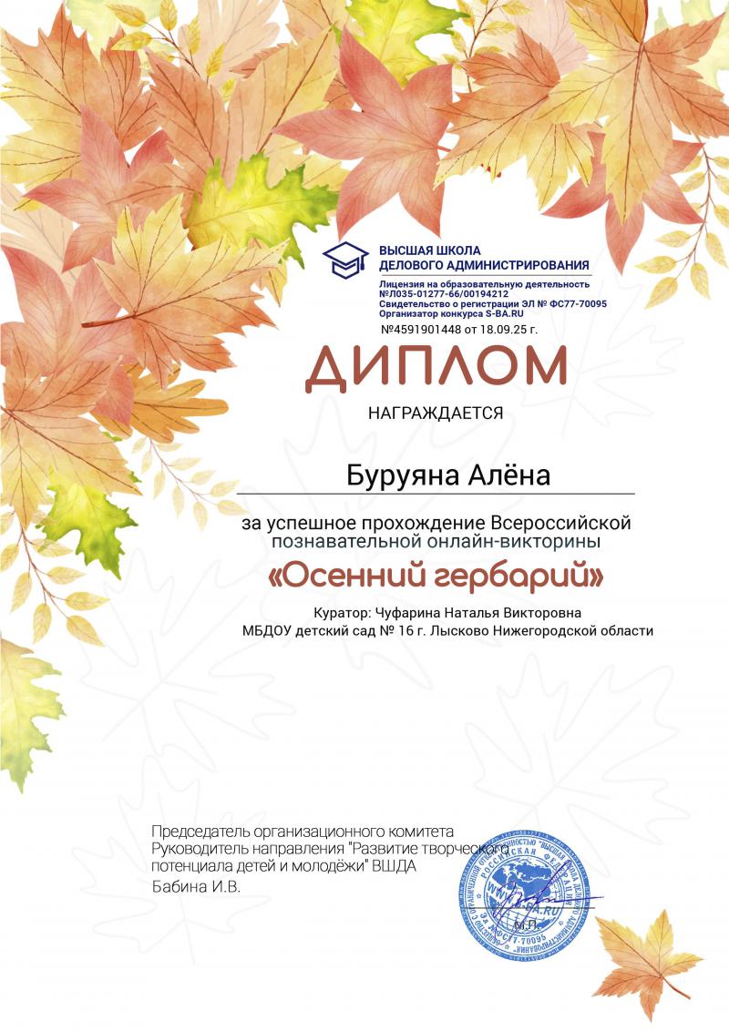 Всероссийская познавательная онлайн-викторина "Осенний гербарий"