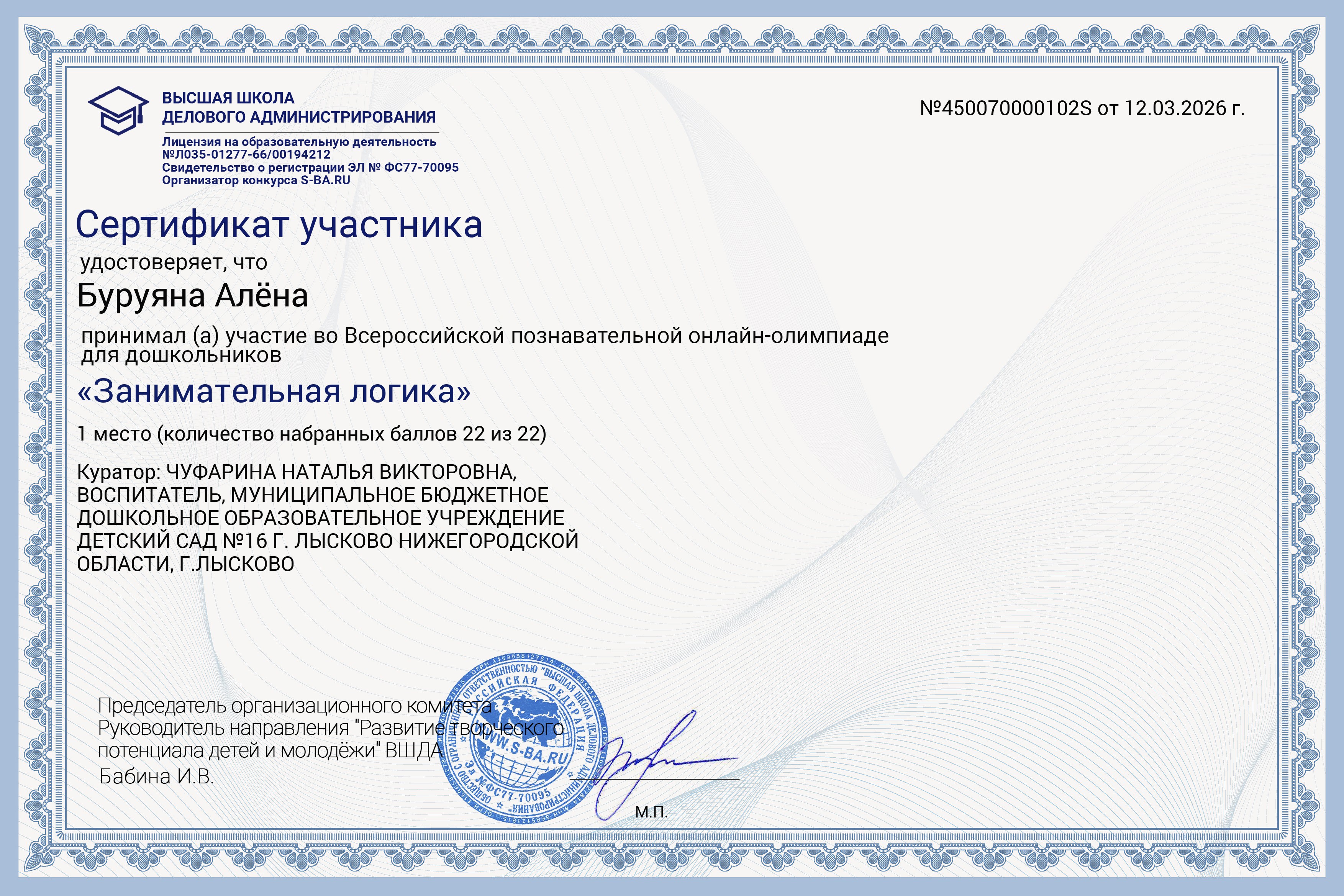 Всероссийская познавательная онлайн-олимпиада для дошкольников "Занимательная логика"