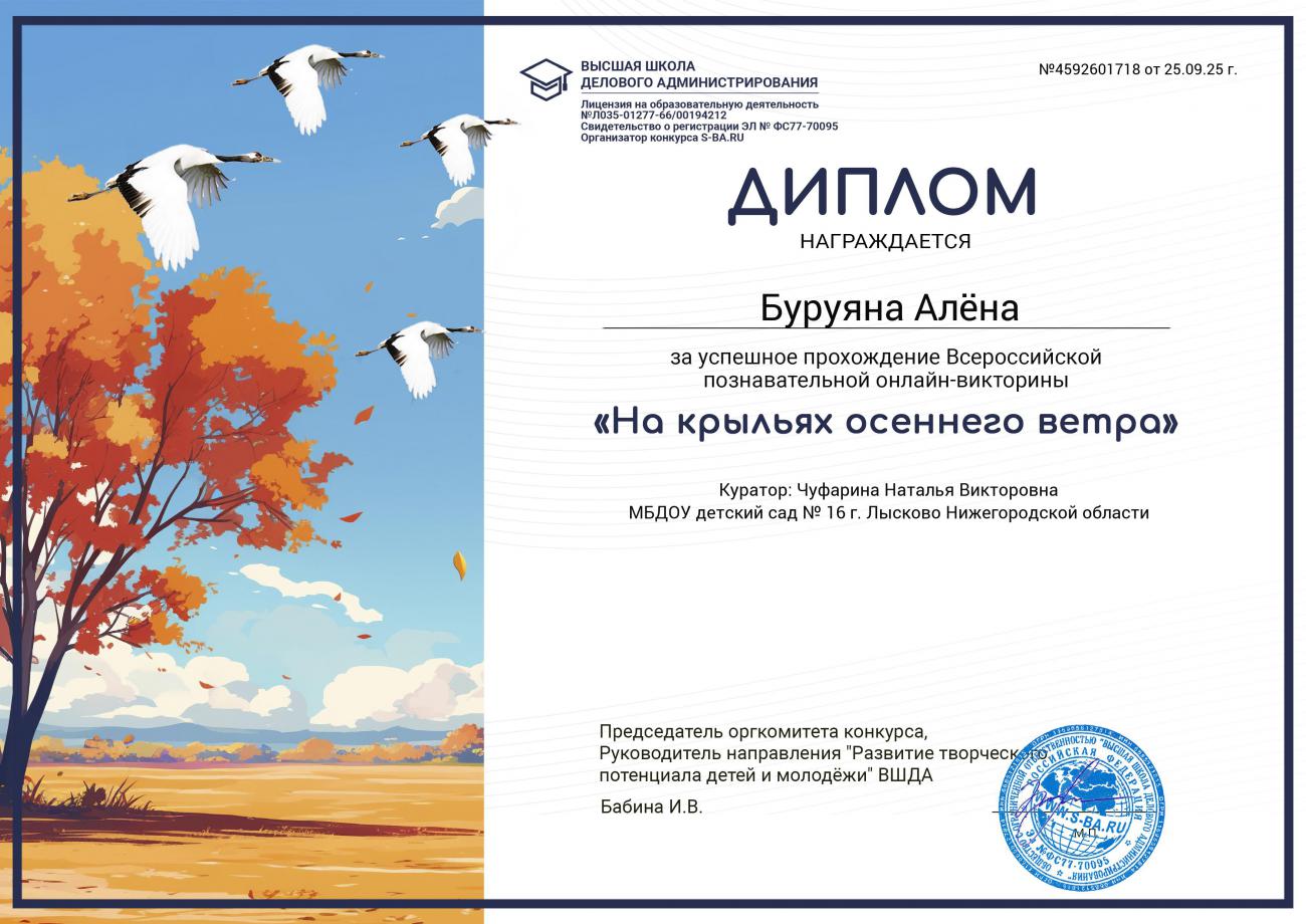 Всероссийская познавательная онлайн-викторина "На крыльях осеннего ветра"