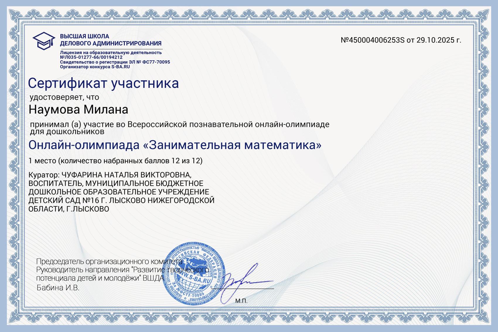 Всероссийская познавательная онлайн-олимпиада для дошкольников "Занимательная математика"