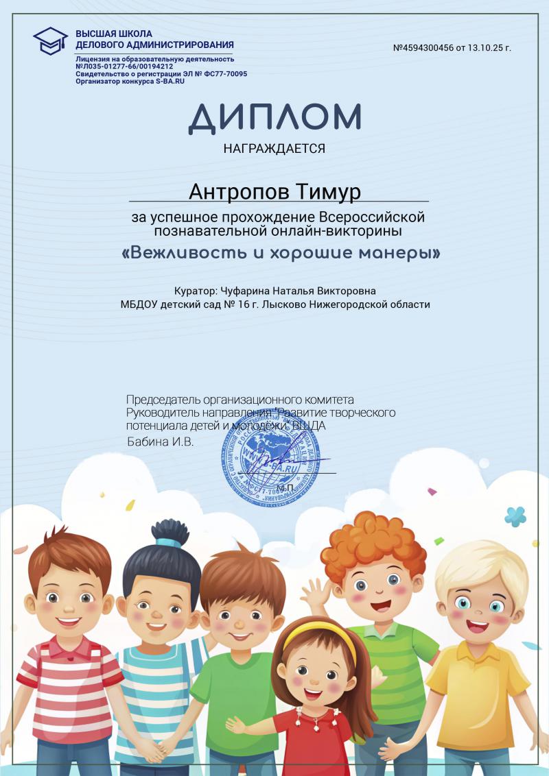 Всероссийская познавательная онлайн-викторина "Вежливость и хорошие манеры"
