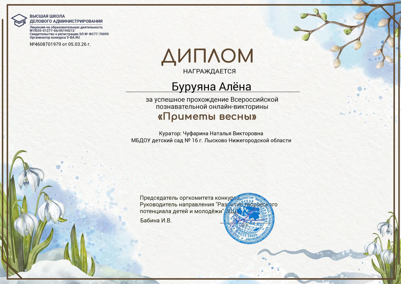 Всероссийская познавательная онлайн-викторина "Приметы весны"