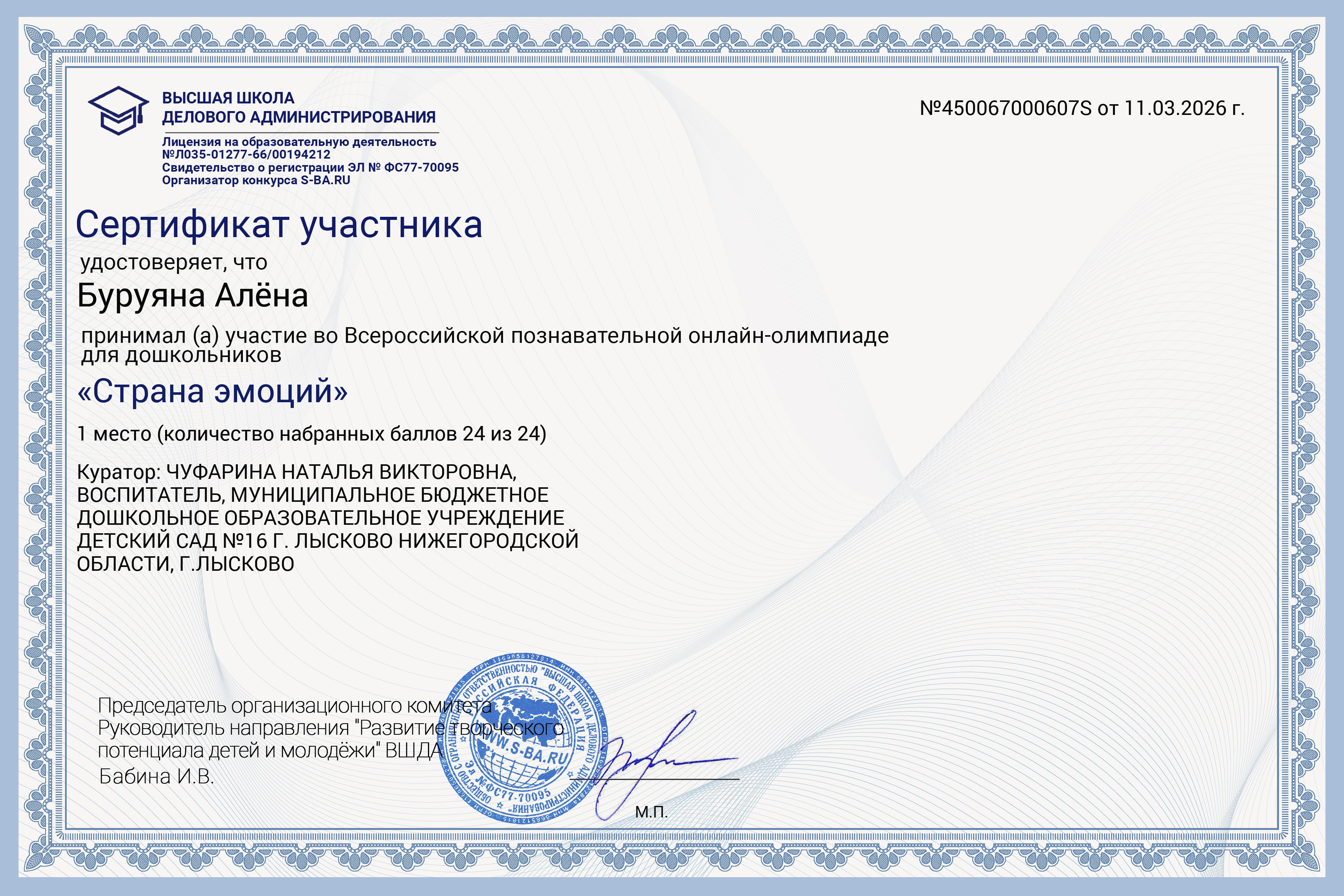 Всероссийская познавательная онлайн-олимпиада для дошкольников "Страна эмоций"